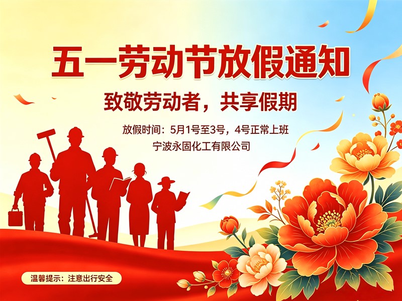 阿拉宁波永固化工——专业做纸管胶、环保白胶等胶粘剂的省心厂家,就在镇海石化经济开发区里头,是一家正儿八经的高新技术企业。马上五一小长假了,根据厂里生产节奏,现把放假安排通知如下: